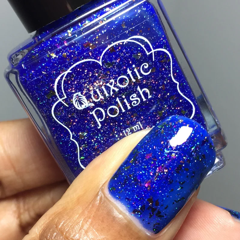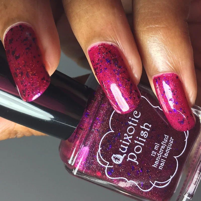 I have new lovelies to share from Quixotic Polish. Gems Uncovered is a collection of four jewel toned polishes. They're packed with Ultra Chrome Chameleon (UCC) flakies to create a gorgeous gem stone effect.