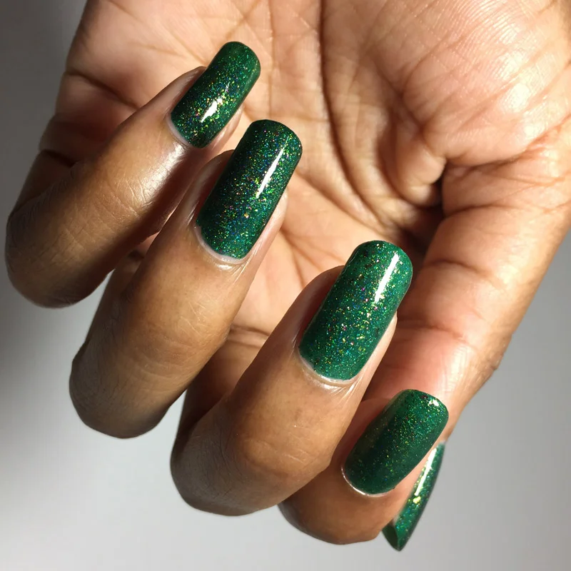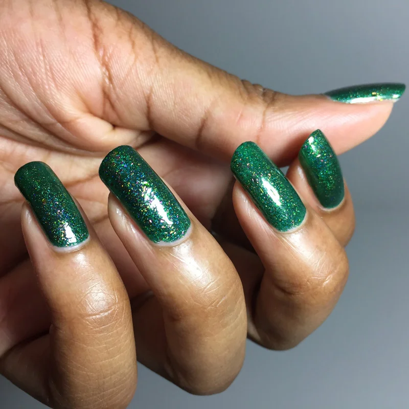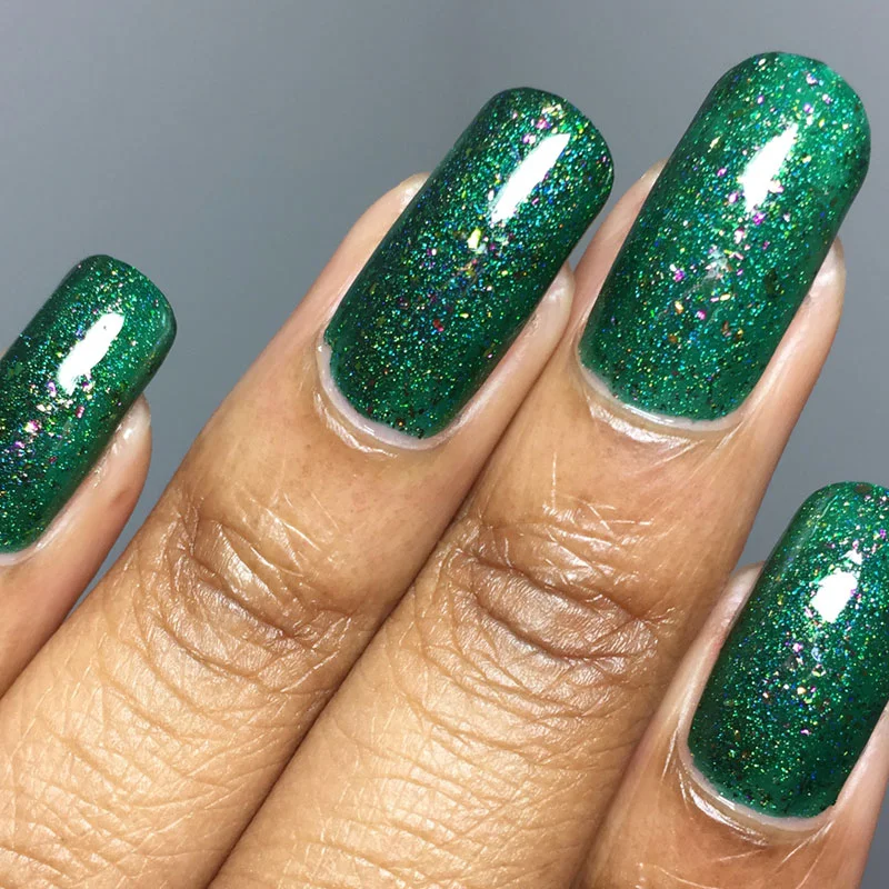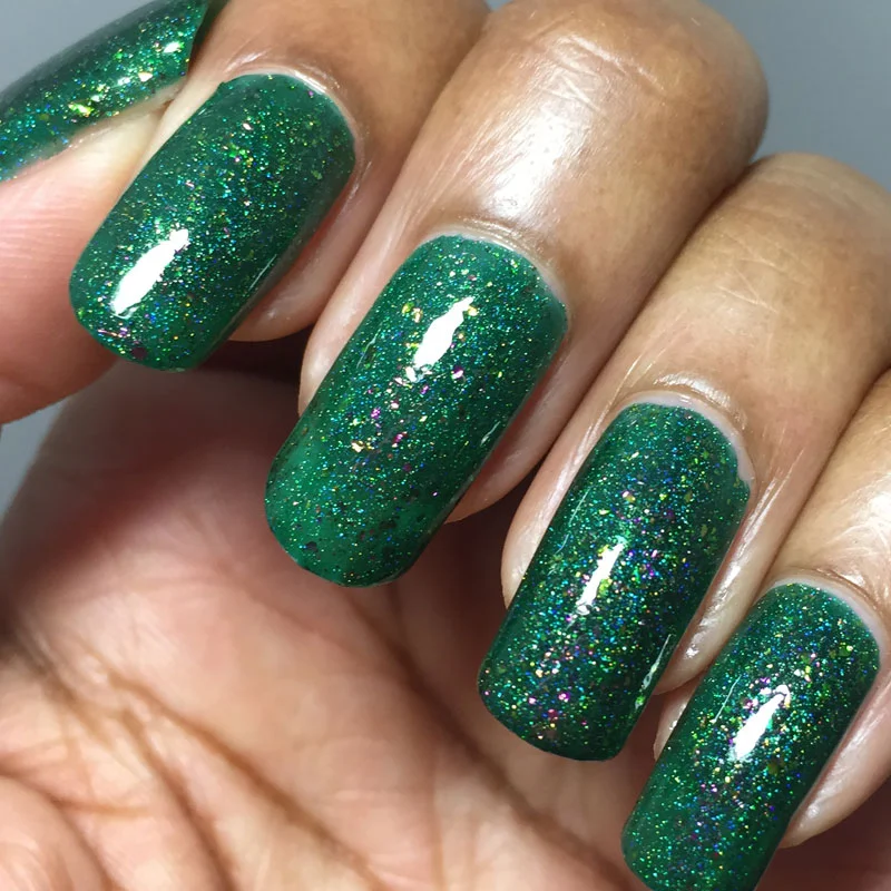 Tsavorite is an emerald green jelly with UCC flakies and holographic microglitter. It's such a beautiful green. I can see myself pulling this color out during the holiday season. I'm wearing two coats and opted for a top coat even though it could be worn without one.