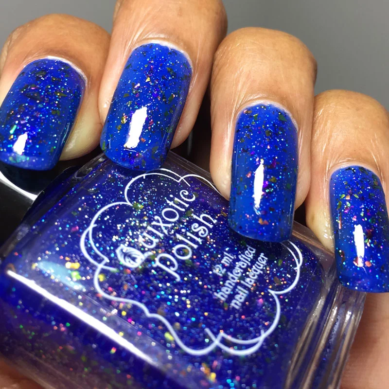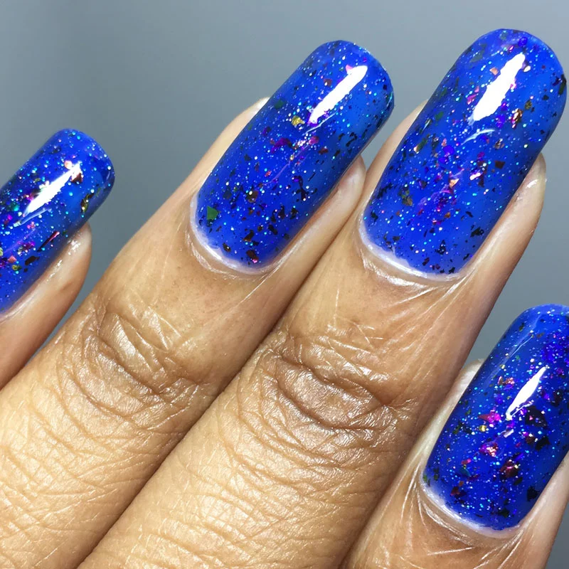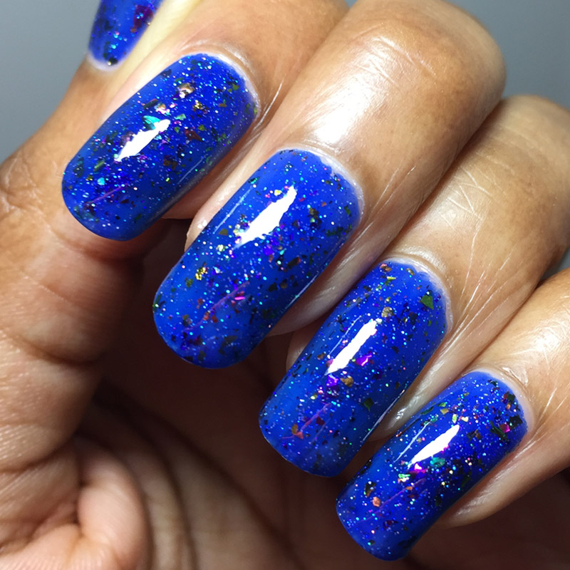 Lazurite is a brilliant sapphire blue jelly with UCC flakies and holographic microglitter.