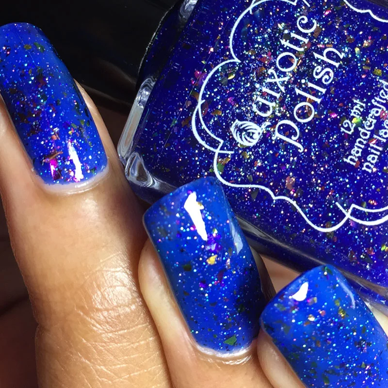 I died then was immediately revived because this polish gives me life! Lazurite is an absolute showstopper. It's galaxy nails in a bottle. Two coats and I added a top coat to make the chameleon flakies really POP. I can't stop staring at my nails.